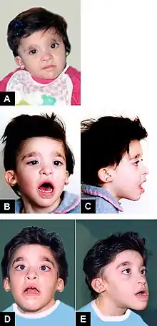 Mowat–Wilson syndrome, clinical features of Patient 2 at age: (A) 1 year and 6 months; (B–C) 3 years and 5 months; (D–E) 8 years and 1 month. | |