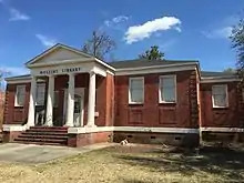 Mullins Commercial Historic District is a national historic district located at Mullins, Marion County, South Carolina. The district encompasses 38 contributing buildings in the central business district of Mullins. It includes an intact collection of late 19th and early 20th century commercial and other public buildings. The buildings illustrate the growth and development of Mullins from its beginnings as a railroad town to its prominence as the leading tobacco market in South Carolina for most of the 20th century. The buildings were constructed between 1895 and about 1945, and represent stylistic influences ranging from late Victorian period examples displaying elaborate brick-corbeled cornices and pediments to the more simplified and minimalist Depression-era examples with typical low relief detailing and vertical piers. Notable buildings include the Old Martin Hospital (1937), Vaughan Hotel (1921), Mullins Library (1941), Old Mullins Post Office (c. 1936), Bank of Mullins / Anderson Brothers Bank (c. 1910), and Mullins Depot (1901). Located in the district are the separately listed Old Brick Warehouse and J.C. Teasley House.[2][3]