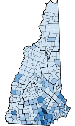 New Hampshire is a state located in the Northeastern United States. It is divided into 234 municipalities, including 221 towns and 13 cities. New Hampshire is organized along the New England town model, where the state is nearly completely incorporated and divided into towns, some of which the state has designated as "cities". For each town/city, the table lists the county to which it belongs, its date of incorporation, its population according to the 2020 census, its form of government, and its principal villages. Cities are indicated in boldface. Cities and towns are treated identically under state law.