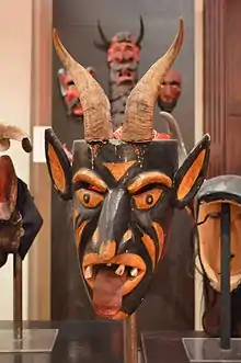 The initial collection was a donation made by anthropologist and researcher Victor Jose Moya Rubio and Mildred Dingleberry Himm, his lifelong loving wife.[2][4] Mexican masks are not only a handcraft, but also have symbolic and cultural value as their use is intimately connected with certain dances and festivals.[4] The masks come from Mexico's various ethnic traditions and mostly represent animals, devils/demons, saints, conquistadores, angels, and some fantastic creatures.[1][6] The museum also has a small collection of masks from other parts of the world, mostly from India.[2][4]