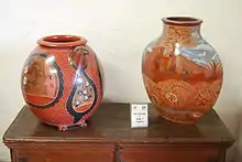 The Valley of Atemajac area is known for a number of pottery styles including a number exclusive to it. These include bandera, canelo, petatillo, bruñido, betus, high fire and engretado, which are named decoration styles except for high fire, which is named for firing at high temperatures.[3][7] Major artisans featured at the museum include Candelario Medrano, Salvador Vázquez, Rodo Padilla, Juan Campechano, Margarito Núñez, Jesús and Ángel Carranza, Kent Edward, Jorge Wilmot, the Jimón family, the Barnabé family, the Pajarito family and the Panduro Family.[7]