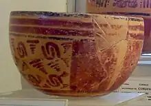 The museum is dedicated to the display of objects excavated by the Atlas Arqueológico de Guatemala within the southeastern Petén region.[7] It displays approximately 125 ceramic pieces and eight stone sculptures.[8] The display of artefacts is divided into periods, ranging from the Late Preclassic through to the Postclassic,[9] covering a span from 900 BC through to 1524 AD.[9] The collection is not limited to the municipality of Dolores, it also includes pieces from the municipalities of La Libertad, Melchor de Mencos, Poptún, San Luis, Santa Ana and San Francisco.[9] Twenty-two archaeological sites are represented at the museum, they include Calzada Mopan, Copoja, Curucuitz, El Chal, El Ocote, El Reinado, Itzimte, Ix Ak, Ixcoxol, Ix Ek', Ixkun, Ixtonton, Ixtutz, La Gloria-Sacul, Limones, Machaquila, Maringa, Pueblito, Sacul, Suk Che', Ucanal and Yaltutu.[9] There are also pieces recovered from the caves of Aktun Ak'ab, Balam Na and El Chapayal.[9]