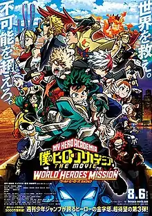 - ↑ Pineda, Rafael (August 23, 2021). "My Hero Academia The Movie: World Heroes' Mission Is Highest-Earning Film in Franchise With 2.06 Billion Yen". Anime News Network. Archived from the original on October 4, 2021. Retrieved August 25, 2021.