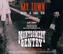 "My Town" is a song written by Reed Nielsen and Jeffrey Steele and recorded by American country music duo Montgomery Gentry. It was released in June 2002 as the lead-off single and title track to their album of the same name. It peaked on the U.S. country chart at #5 and also peaked at #40 on the Billboard Hot 100, making it one of their highest peaking crossover singles.