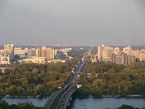 View of the territory of the Mykilska Slobidka today, as seen from the city's right bank
