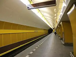 Národní třída ("Avenue of the Nation", Czech pronunciation: [ˈnaːrodɲiː ˈtr̝iːda]) is a Prague Metro station on Line B. The station has two exits, one to Spálená street where it connects to the tram network and other to M. D. Rettigové street, using a pair of lifts. The station was opened on 2 November 1985, as part of the inaugural section of Line B between Sokolovská and Smíchovské nádraží.[2]
