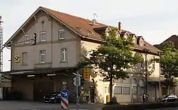 The entrance building of 1934 was very representative of its time, but functional. The main part of the building (central building and two two-story wings) initially had a length of 43 metres and a width of 14.5 metres. To the north, extending for a length of about 4.5 metres, there is a staircase that forms a buttress. This is followed by a one-storey annexe. Deutsche Bundesbahn also extended the building to the south with a five-metre-long one-story annex.