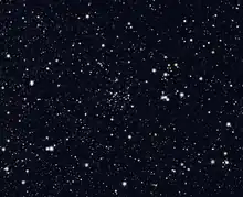 NGC 6811 is an open cluster in the constellation of Cygnus,[3] near the constellation of Lyra.[4] It has an angular size half that of the full Moon and includes about 1000 stars[5] of roughly similar magnitude.[3][6] It has also been called "The Hole in the Cluster" because of its dark center.[6][7]