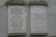 ![]() Plaques at Zolochiv Castle commemorating victims of the massacre | |