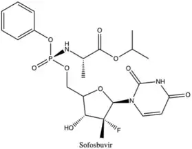 - ↑ Sofia, Michael J.; Bao, Donghui; Chang, Wonsuk; Du, Jinfa; Nagarathnam, Dhanapalan; Rachakonda, Suguna; Reddy, P. Ganapati; Ross, Bruce S.; Wang, Peiyuan; Zhang, Hai-Ren; Bansal, Shalini; Espiritu, Christine; Keilman, Meg; Lam, Angela M.; Steuer, Holly M. Micolochick; Niu, Congrong; Otto, Michael J.; Furman, Phillip A. (14 October 2010). "Discovery of a β-2′-Deoxy-2′-α-fluoro-2′-β-methyluridine Nucleotide Prodrug (PSI-7977) for the Treatment of Hepatitis C Virus" (PDF). Journal of Medicinal Chemistry. 53 (19): 7202–7218. doi:10.1021/jm100863x. PMID 20845908. Retrieved 1 October 2018.