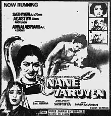 Naane Varuven (transl. I myself will come) is a 1992 Indian Tamil language film, directed by Sripriya and produced by Girija. The film stars Rahman and Sripriya, with Rajani, Vagai Chandrasekhar, Vadivukkarasi, Gautami and Radhika in supporting roles. It is a spiritual sequel to the 1979 film Neeya?.[1] The film was released on 27 February 1992.[2]