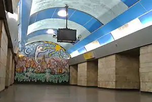 Nadzaladevi (Georgian: ნაძალადევი) is a station on the First Line (Akhmeteli-Varketili Line) of the Tbilisi Metro. It opened on 11 January 1966, when the first section of the metro was put into operation. The station and its vestibule was renovated and overhauled in 2007.