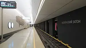 Nagatinsky Zaton (Russian: Нагатинский затон, lit. 'Nagatino bay' ⓘ) is a metro station on the Bolshaya Koltsevaya line of the Moscow Metro, between Klenovy Bulvar and Pechatniki. The name of the station derives from Nagatinsky Zaton District where it is located. The station was opened on 1 March 2023. The construction started in 2017.[1]