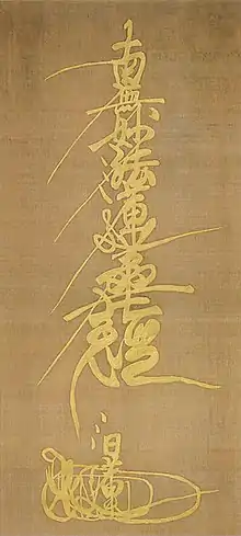 Namu Myōhō Renge Kyō[lower-alpha 1] (南無妙法蓮華経) are Japanese words chanted within all forms of Nichiren Buddhism. In English, they mean "Devotion to the Mystic Law of the Lotus Sutra" or "Glory to the Dharma of the Lotus Sutra".[2][3]