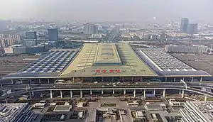 Nanjingnan (Nanjing South) railway station (Chinese: 南京南站; pinyin: Nánjīngnán Zhàn) is a high-speed railway station in Nanjing, the capital of Jiangsu province, serving the Beijing–Shanghai (Jinghu) high-speed railway, Shanghai–Nanjing (Huning) intercity railway, Nanjing–Hangzhou (Ninghang) high-speed railway, Shanghai–Wuhan–Chengdu (Huhanrong) high-speed railway and the South Jiangsu Riverside high-speed railway. The new Nanjing South railway station is located a few kilometers south of downtown Nanjing in Yuhuatai District, and has a connection with the Nanjing Metro, served by Lines 1, 3, S1 and S3. Construction on the station began on 10 January 2008,[1] and the station opened on 28 June 2011,[2] two days before the opening of the Beijing–Shanghai high-speed railway.