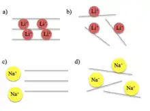 Raccichini et al. suggested graphene-based composites as cathodes in sodium-ion batteries. Sodium ions are too large to fit into the typical graphite lattice, so graphene would allow sodium ions to intercalate. Graphene has also been suggested to fix some of the problems related to lithium-sulphur batteries. Problems associated with lithium sulphur batteries include dissolution of the intermediate in the electrolyte, large volume expansion and poor electrical conductivity.[17] Graphene has been mixed with sulphur at the cathode in an attempt to improve the capacity, stability and conductivity of these batteries.[17]