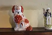 A collection of traditional Staffordshire figures and willow pattern china as found in the house during the Dyer Goughs period.