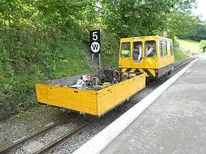 ![]() The Permaquip locomotive and wagon form a works train at Nantyronen railway station. | |