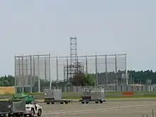 The airport opened under a high level of security; the airfield was surrounded by opaque metal fencing and overlooked by guard towers staffed with riot police. 14,000 security police were at the airport's opening and were met by 6,000 protesters; a Japanese newscaster remarked at the time that "Narita resembles nothing so much as Saigon Airport during the Vietnam War."[16] Protestors attacked police on the opening day with rocks and firebombs while police responded with water cannons; on the other side of Tokyo, a separate group of protestors claimed responsibility for cutting the power supply to an air traffic control facility at Tokorozawa, which shut down most air traffic in the Tokyo area for several hours.[14] The National Diet passed a special statute, the Emergency Measures Act Relating to the Preservation of Security at New Tokyo International Airport, specifically banning the construction and use of buildings for violent and coercive purposes relating to the new airport.[17] Nevertheless, several people have been killed by terrorism, including in arson incidents against Totetsu Kogyo and Nippi Corp. employees in 1983 and 1990, respectively, as well as an attack on a Chiba Prefecture official in 1988.