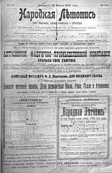 The Narodnaya Letopis (Russian: Народная летопись) was the first newspaper of Novonikolayevsk, the Russian Empire. It was published in 1906–1907 and 1909–1910. The founder and first editor of the newspaper was Nikolay Litvinov.