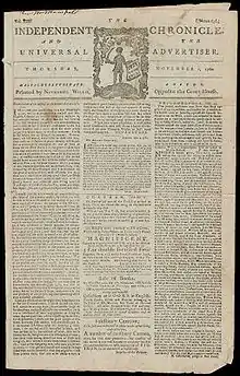 - ↑ Eighteenth-Century American Newspapers in the Library of Congress: Massachusetts