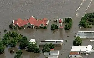 During the Iowa flood of 2008, the Cedar River overflowed its banks, flooding the museum and library with 8 feet (2.4 m) of water and causing severe damage to the exhibitions and contents. The damage was variously valued at $8 million or $9 million.[7] The flood occurred just days before the museum was scheduled to reveal its choice among four proposals for a tripling in the size of the facility.[4]