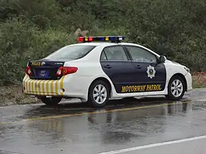 The National Highways & Motorway Police (Urdu: نیشنل ہائی ویز اینڈ موٹروے پولیس), abbreviated NHMP, is a police force in Pakistan that is responsible for enforcement of traffic and safety laws, security and recovery on Pakistan's National Highways and Motorway network. NHMP use SUVs, cars and heavy motorbikes for patrolling purposes and use speed cameras for enforcing speed limits.