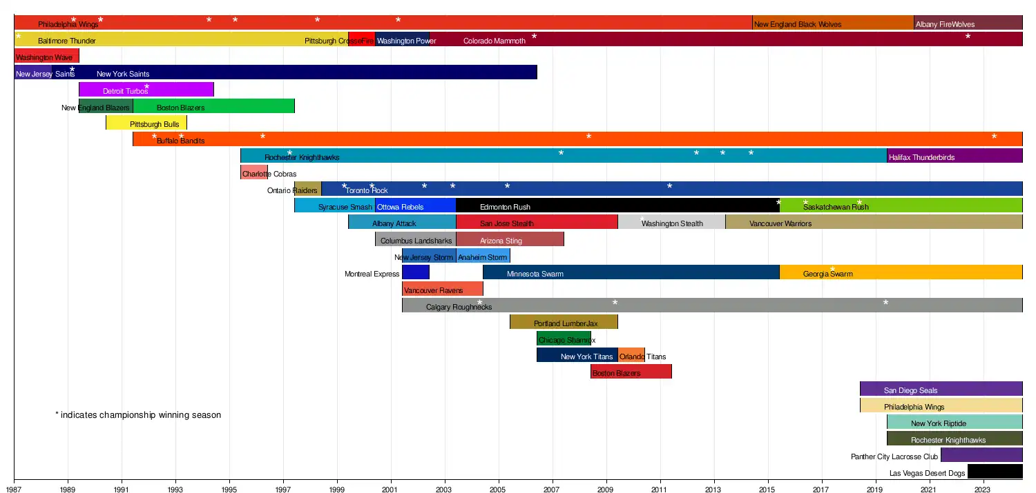 Formerly | Eagle Pro Box Lacrosse League (1986–1988) Major Indoor Lacrosse League (1988–1997) |