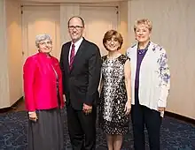 Secretary of State and former First Lady Hillary Clinton has been twice honored by the National Partnership, in 1994 and 2012. In 2012 she said of the National Partnership, "For more than 40 years, you've been protecting the most vulnerable among us and holding us all to account when we are not living up to our own American values. And in the process, you improve the lives of countless women and help make that future a better place for them and their children."[9]
