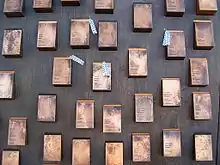 The surface of the touchstone wall is clad in cast bronze panels with a slight textural feel and a dark patina. The surface of the cladding is smooth enough to allow the patina to have a gloss wax finish. The touchstones are also cast bronze but have a golden, almost polished patina, that will change over time with the degree to which each stone is touched. There are 1200 touchstones, which is meant to symbolise the ongoing danger for police on duty.