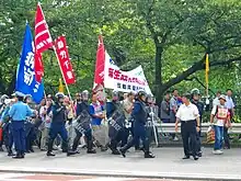 As of 1985, the union had 1,100 members,[5] and on November 28, 1985, it staged a strike to protest against the plans of the Prime Minister Yasuhiro Nakasone's government to privatize JNR and lay off workers. The government strongly condemned the strike, as government workers in Japan are forbidden to strike. In addition there were a number of acts of sabotage and vandalism that stranded 10 million commuters in Tokyo and 200,000 in Osaka. The 24-hour strike caused 135 trains between Tokyo and Chiba prefecture to be cancelled, and JNR's management decided to fire more than 100 workers for staging the illegal walkout.[6]