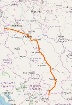 0007/1173 9.6 km (6.0 mi) 123.1 km (76.5 mi) Belgrade (Autokomanda) – Bubanj Potok