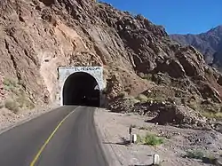 Tunnel 1 is on the outskirts of Cacheuta, on Provincial Route 82 (an old stretch of National Route 7) and it is closed. The route now passes outside the mountain next to Mendoza River.