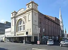 Located on the corner of Charles Street and Paterson Street, the National Theatre was formally opened on 25 September 1915 by Mayor Alderman Percy Hart, whose wife Margaret raised the curtain for a production of The Silence of Dean Maitland staged by the George Marlow Dramatic Company.[2][4][5] The National was used for theatre productions, films, ballet, opera, and sporting events such as boxing and wrestling. Early theatrical performances and amusements included Harry Lauder,[6] Roy Rene[7] and Annette Kellerman.[8] Classical music and operatic productions included Eileen Joyce,[9][10] Ignaz Friedman,[11] Essie Ackland,[12] Rudolf Pekárek,[13] John Brownlee, Peter Dawson and brothers Jascha Spivakovsky and Tossy Spivakovsky.[10]