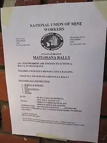 - ↑ "Strike until NUM leaders step down, Malema tells SA's miners". Ng.co.za. Retrieved 10 August 2018.