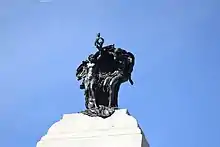 The allegorical statues symbolizing peace and liberty surmounts the memorial