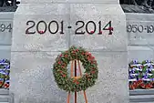 The years 2001–2014 on the base of the memorial