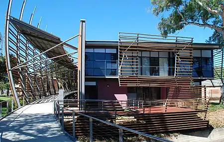The National Wine Centre of Australia (commonly the "Wine Centre") is a public exhibition building about winemaking and its industry in South Australia, opened in 2001.[1] It contains an interactive permanent exhibition of winemaking, introducing visitors to the technology, varieties and styles of wine. It also has a wine tasting area, giving visitors the opportunity to taste and compare wines from different areas of Australia.