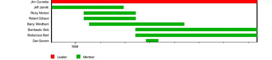 Members | Jim Cornette (leader) Jeff Jarrett Ricky Morton Robert Gibson Barry Windham Bombastic Bob Bodacious Bart Dan Severn |