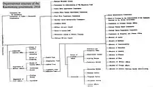 With the promulgation of the Organic Law of the National Government in October 1928, the government was reorganized into five different branches or Yuan, namely the Executive Yuan, Legislative Yuan, Judicial Yuan, Examination Yuan as well as the Control Yuan. The Chairman of the National Government was to be the head-of-state and commander-in-chief of the National Revolutionary Army. Chiang Kai-shek was appointed as the first Chairman of the National Government, a position he would retain until 1931. The Organic Law also stipulated that the Kuomintang, through its National Congress and Central Executive Committee, would exercise sovereign power during the period of political tutelage, and the KMT's Political Council would guide and superintend the National Government in the execution of important national affairs and that the council has the power to interpret or amend the organic law.[32]