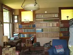 The Kiplings, while on their honeymoon in 1892, visited Caroline Starr Balestier Kipling's parents in nearby Brattleboro. Taken by the countryside, the couple purchased this property from Caroline's brother, and had the house built on it in 1893 to a design by Henry Rutgers Marshall, with significant input from Kipling. In 1894, Arthur Conan Doyle visited Kipling at Naulakha, where the two played golf together.[7] The Kiplings lived here until 1896, when a dispute with a hot-tempered neighbor (his brother-in-law Beatty Balestier) led to court proceedings and an avalanche of unwelcome publicity. The Kiplings attempted to return in 1899, but illness on the sea crossing from England frustrated the plan. The property was owned for much of the 20th century by members of the Holbrook family, who in 1992 sold it to the Landmark Trust,[1] a preservation organization that restores historic properties and makes them available to the public. The property has largely been restored to its appearance as of the Kiplings’ ownership, and includes artifacts belonging to the family.
