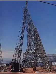 MCB 5 constructing an Integrated Wideband Communication System Antenna on Monkey Mountain during the 1966-67 Vietnam deployment. (Seabee Museum)