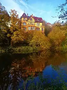 - Villa Lust by district judge Ludwig Lust; in 1888 he transformed the fallow vineyards behind the villa into a small park called Ludwigslust,[29][30] "equipped with grotto, fountain basin and a luxurious cast-iron winter garden, which he had bought specially from an old Stuttgart villa"; it was the home of Konrad Knopp.[31]