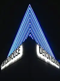 In the 1950s, cable television first came to Oklahoma in Bartlesville, where the "Telemovies" system was started by Video Independent Theatres.[8] Television and the advent of new technology and introduction of inexpensive air freight, hurt the film exchange business and by the 1970s and early 1980s, film row became a haven for bars, prostitution and drugs.[5] Several of the historic buildings in the district are now listed on the National Register of Historic Places.[5] In 2003, a part of downtown Oklahoma City was developed into the new Film Row, to honor its roots as a film exchange district.[5]