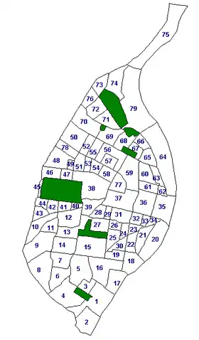 The City of St. Louis officially recognizes 79 neighborhoods within its limits.[1] Census data is collected for each neighborhood, as well as crime data, historic property data, and dining establishment health ratings. National historic neighborhoods are identified by the official neighborhood to which they belong.