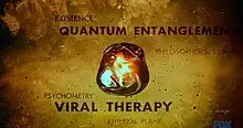 ![]() The new amber-tinted title sequence, featuring new terms such as 'Viral therapy', 'Philosopher's stone', and 'Existence' | |