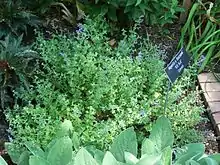 Nepeta × faassenii is cultivated for its attractive aromatic foliage and masses of blue flowers,[4] as groundcover, border edging, or in pots or rock gardens. It is drought tolerant, and can be deer resistant. It has gained the Royal Horticultural Society's Award of Garden Merit.[5] It was first cultivated by Faassen Nurseries in Tegelen, Netherlands, and named by Bergmans.