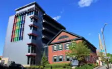 The 225-acre (91 ha) campus, which has no distinct borders separating it from the town of Henniker, features 30 buildings, many of which feature white clapboard-style siding or brick mid-century architecture. The campus is known throughout New England for promoting environmental education initiatives. Pats Peak ski resort lies just outside the village center, and many students participate in outdoor activities such as skiing, snowboarding, whitewater rafting, hiking in the White Mountains, and rock-climbing.[9]