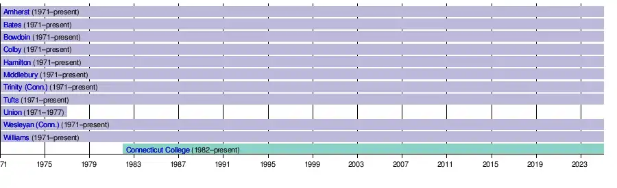 - 1982 - Connecticut College joined the NESCAC, effective in the 1982-83 academic year.