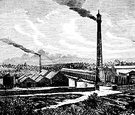The Sydney merchant Thomas Sutcliffe Mort and the manager of Western Kerosene Oil Company, Scottish-born gas engineer and shale oil expert James Walter Fell (1847–1882), were pivotal in the merger of the two companies and rationalisation of their operations, to form New South Wales Shale and Oil, in 1872.[4][5] Mort was a director of Western Kerosene Company when, in July 1871, he had bought the assets of its unsuccessful rival at an auction.[6][7] The new company was incorporated by an act of the New South Wales Parliament on 10 February 1873,[8] and took over all existing operations at Hartley Vale and Waterloo.[9][3]